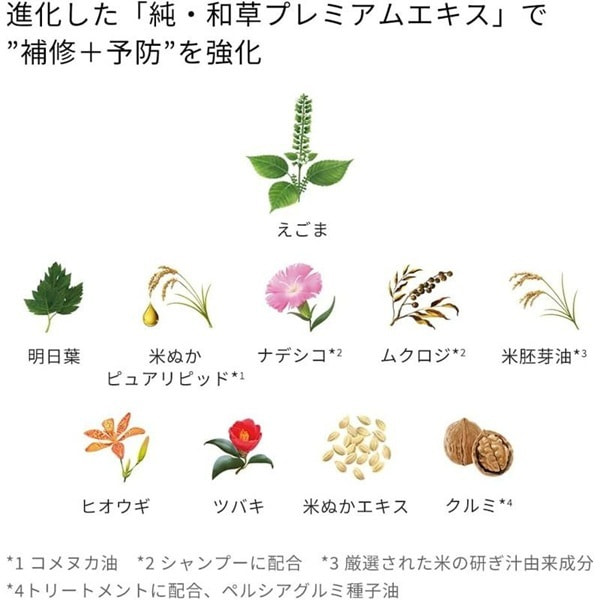 Состав: ашитаба (растение с антиоксидантными и увлажняющими свойствами), чистые липиды рисовых отрубей (масло рисовых отрубей), перилла, японский крахмал, масло рисовых зародышей (ингредиенты, полученные из тщательно отобранной воды для промывания риса), кипарис, камелия, экстракт рисовых отрубей, поликватерниум-64, диэтилсебацинат, бегентримония хлорид.